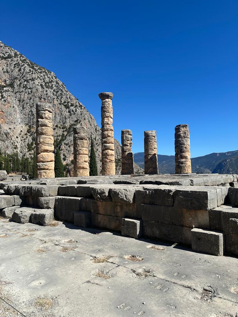 In ancient Greek mythology, Zeus released two eagles from opposite ends of the earth, and where they met — Delphi — was declared the omphalos, the navel of the world. Standing among the temple’s surviving six Doric columns today, with their honey-gold stone glowing in the sun, it’s easy to imagine why this place held such spiritual power.